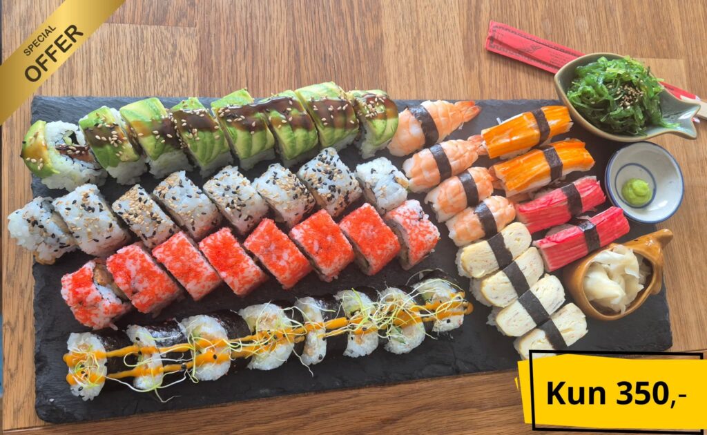 Indeholder: Sushi Ris, Sushi Eddike, Tang, Indbagte Tempurarejer, Kylling Buttermilk, Flødeost, Avocado, Agurk, Crab Stick, Hjemmelavet Søde Æg